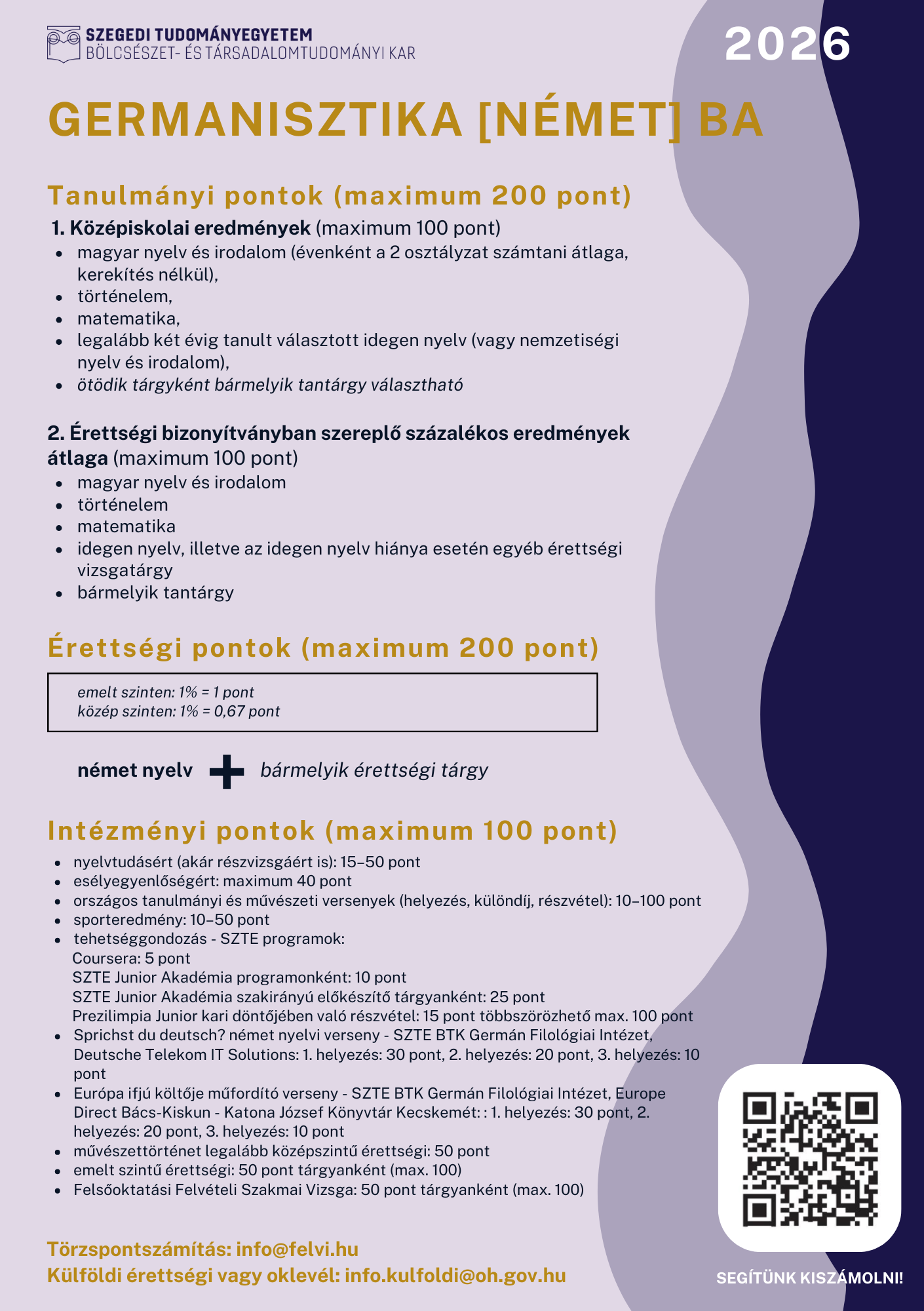 Számold ki, hogy ezen a szakon hány pontot érnél el a felvételin:GERMANISZTIKA BA