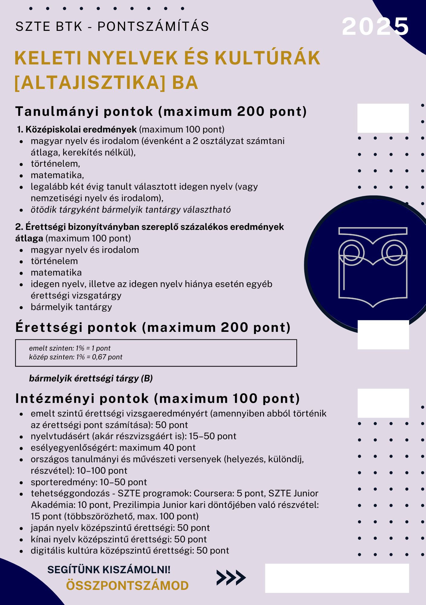 Jelöld meg a jelentkezés során az SZTE Keleti nyelvek és kultúrák (altajisztika) alapképzését!